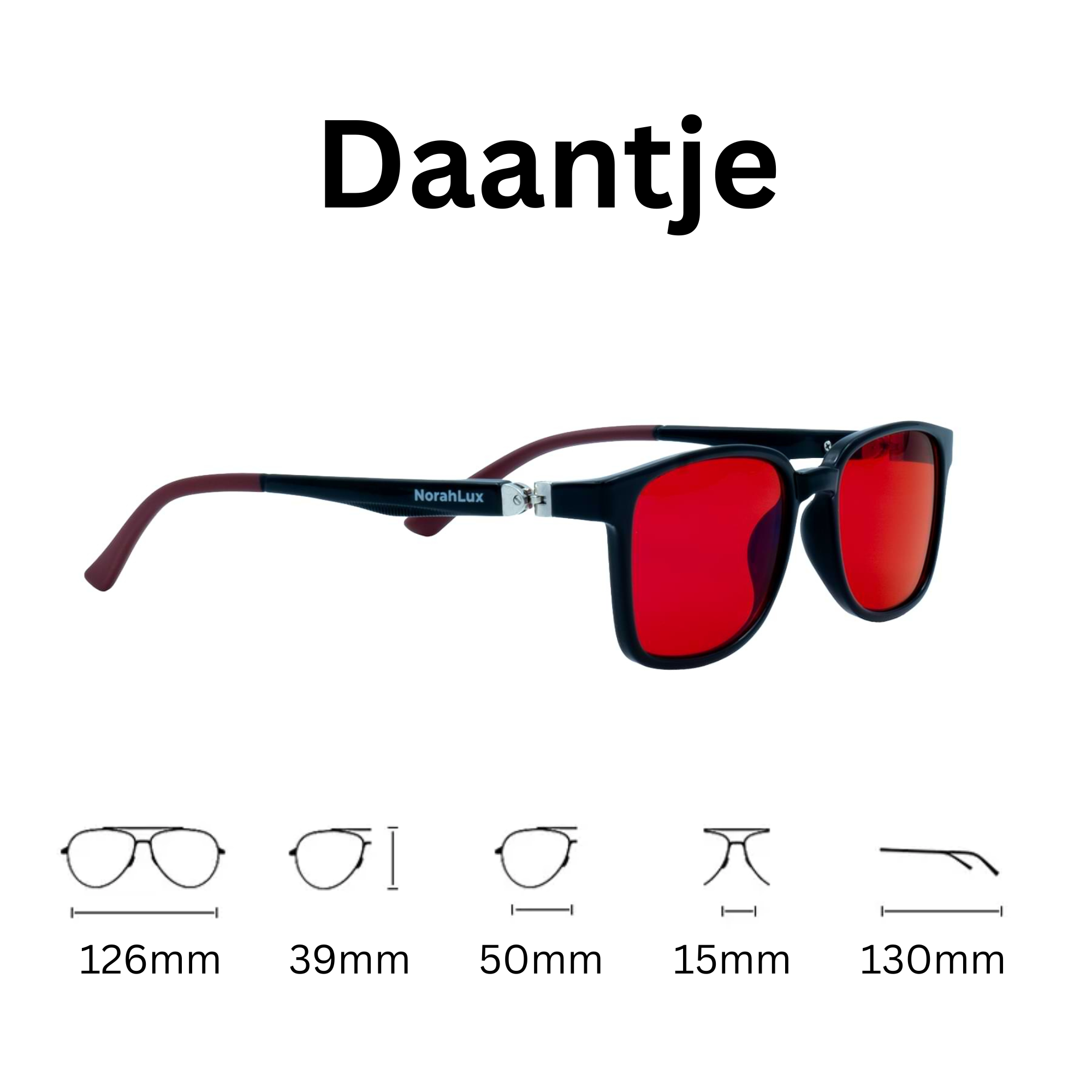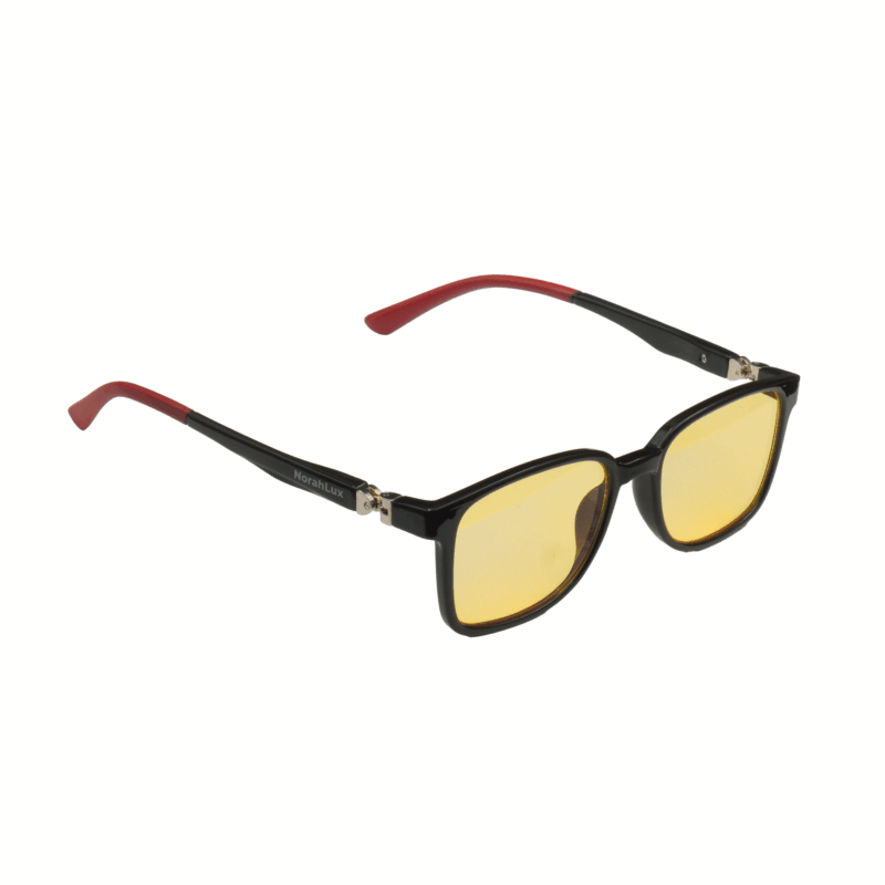 Deze bril heeft gele, oranje of rode filters welke het meeste blauw en groen licht filteren. Voorbeelden en uitleg kun je hieronder lezen. In de video (tabblad video) kun je ook zien hoeveel de brillen per kleur kunnen filteren aan blauw en groen licht.