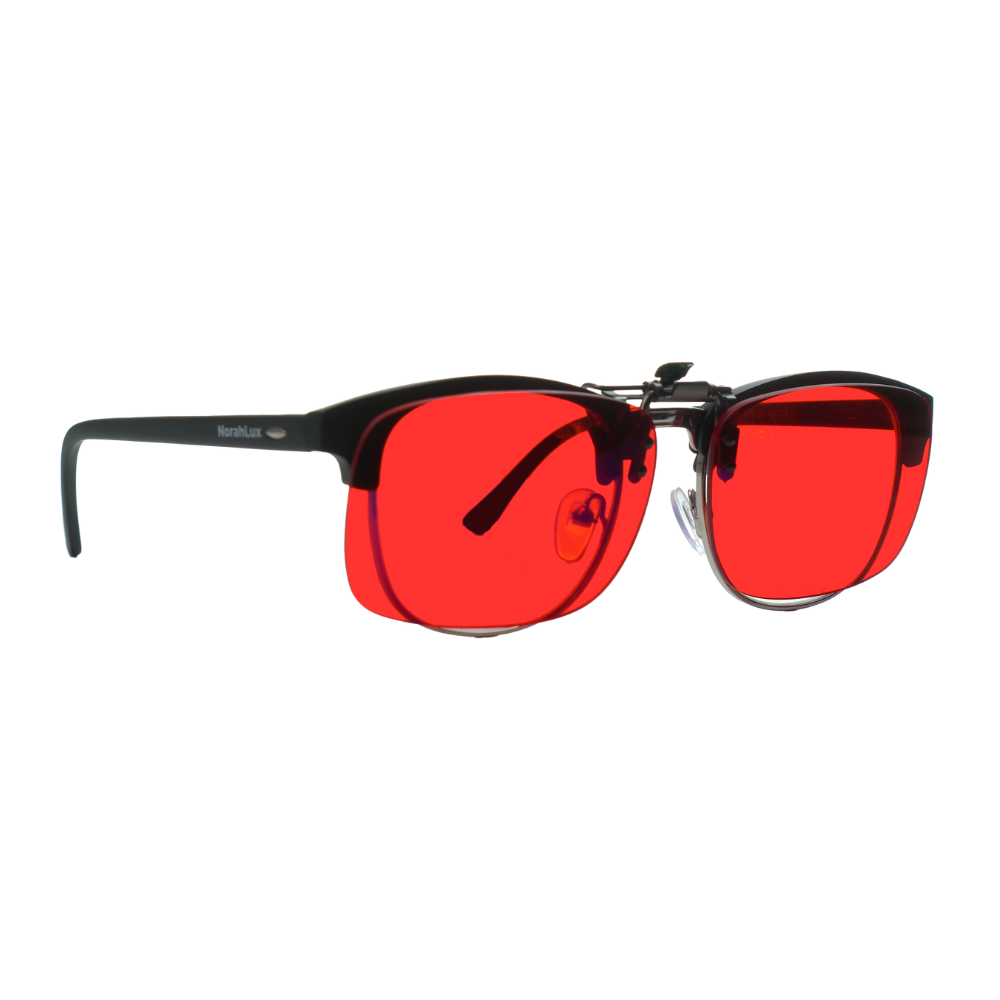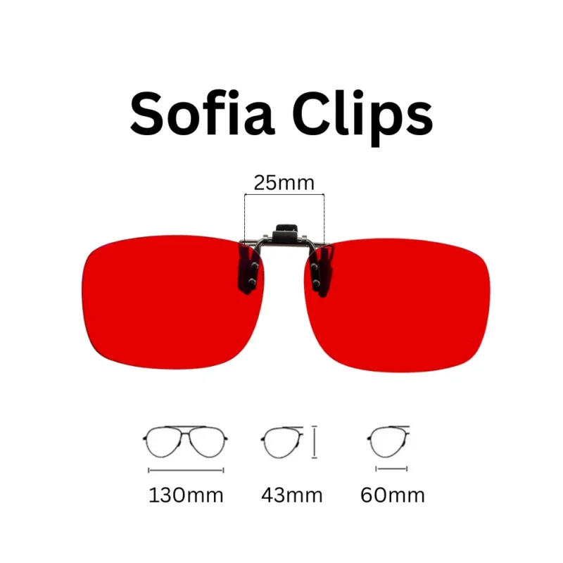 Deze clips hebben oranje of rode filters welke het meeste blauw en groen licht filteren. Voor voorbeelden en uitleg kun jede Specificaties hieronder lezen. In de video (tabblad video) kun je ook zien hoeveel de brillen per kleur kunnen filteren aan blauw en groen licht.